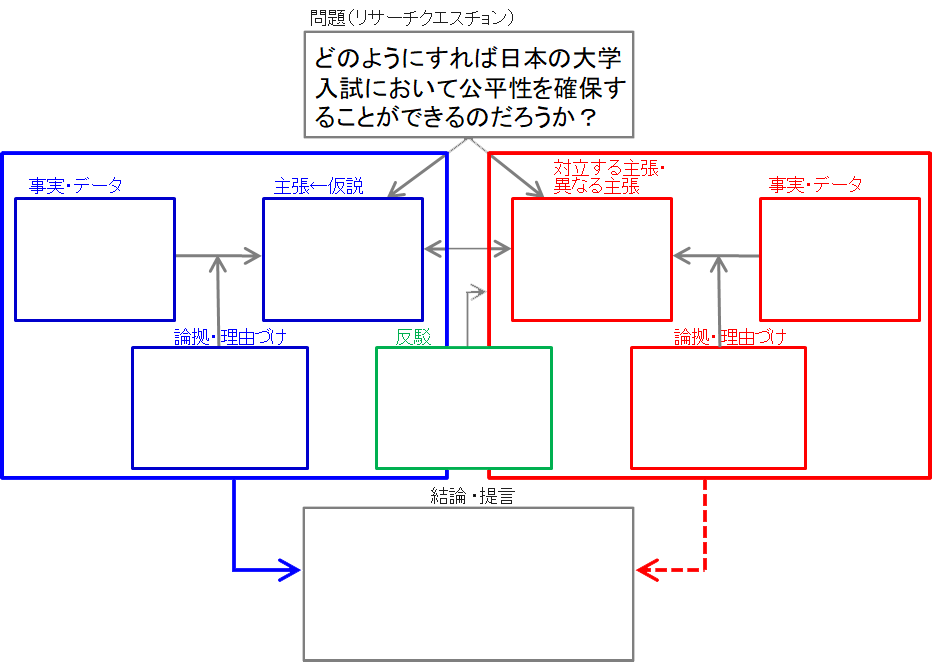 ここでは、大学入試の公平性に関わる課題を取り上げ、対話型論証モデルを用いて、議論の内容を整理しながら、考えていくことにします。